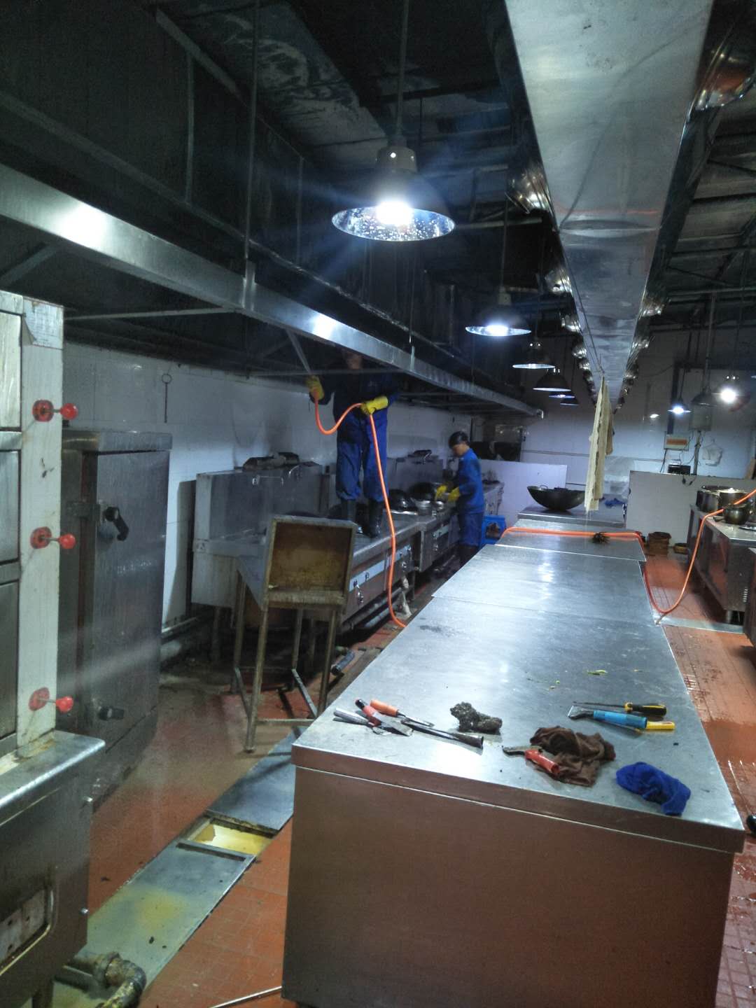 煙道是賓館、酒樓廚房的基礎(chǔ)設(shè)施,極易藏污納垢,是清理的死角。同時煙道是消防、衛(wèi)生、防疫部門檢查的重點區(qū)域.煙道、煙罩若不經(jīng)常清洗,積油越積越多,順著煙罩自然倒流,不僅影響飯菜質(zhì)量,而且還有損酒店信譽。同時,煙道中易寄生老鼠、蟑螂,不符合國家衛(wèi)生標(biāo)準(zhǔn).油膩膠狀物長期扒附在金屬表面,還會腐蝕金屬材料,縮短煙道使用壽命。由于酒店食堂廚房排煙罩因長期積油,煙道、煙罩常年處于高溫工作環(huán)境,油煙氣化形成積油、積炭或油膩的膠狀物。很容易引起火災(zāi)。使用專用的煙道、煙罩清潔劑,對煙道金屬材料清潔后,能在材料表面附著一層保護膜.在攝氏80度時,自動散發(fā)二氧化碳阻止燃燒.徹底解決客戶的后顧之憂。