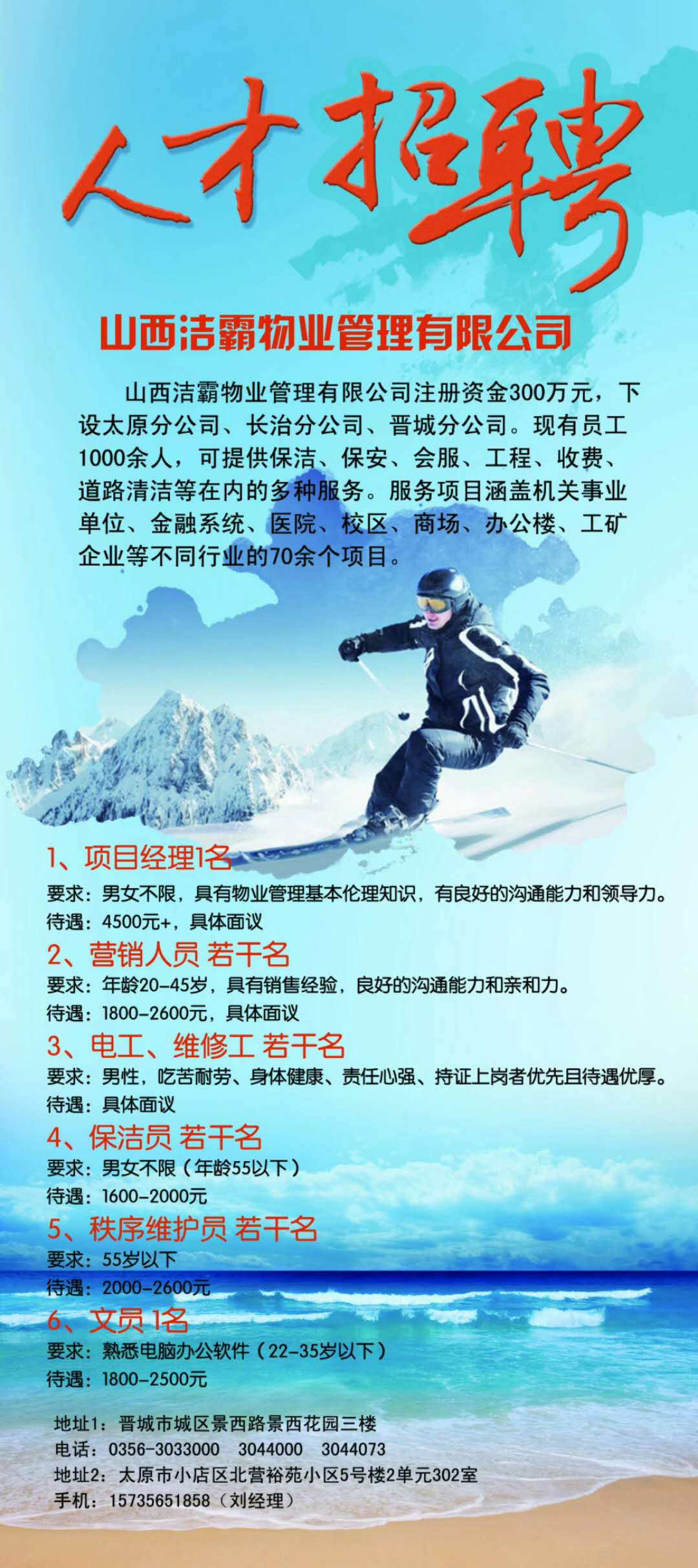 潔霸公司太原分公司現在正是招賢納才時候,希望各位有理想、有抱負的年輕人可以加入我們,共同為潔霸公司更加美好的明天而努力!
