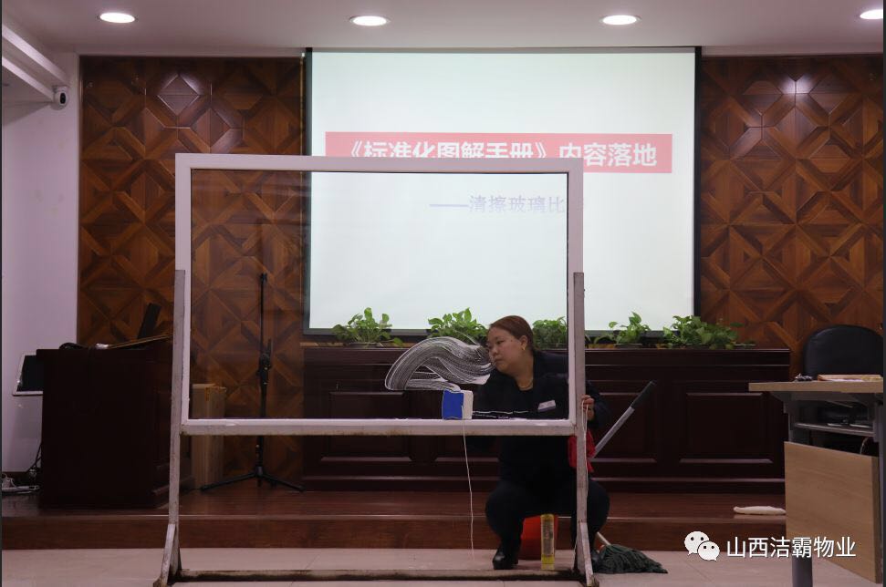 為提高公司管理人員基礎技能,潔霸公司利用周四內部員工培訓的時間組織了一次系統的內部管理人員檫玻璃培訓,隨后并進行了以組為單位的檫玻璃競賽。