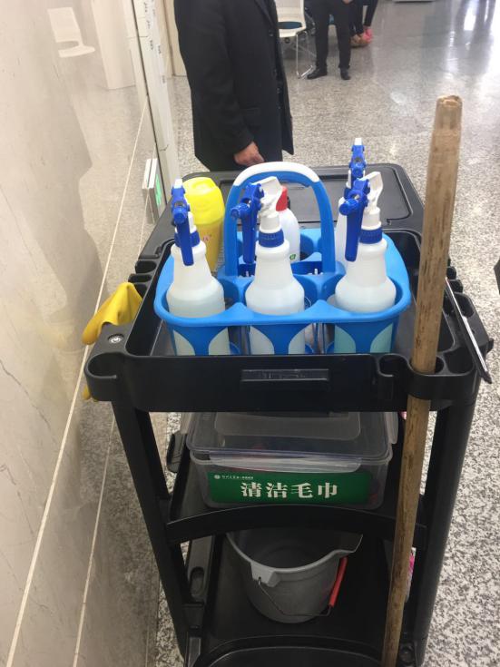 保潔車干凈、整潔、配備齊全。從物品的分類,合理的擺放等細節方面充分體現了公司的管理方式,保潔員的整體素質。