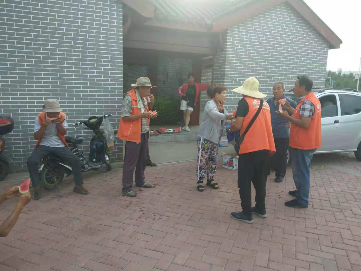 在體育器材區,慰問小組人員切好西瓜,一一遞給員工,并向員工發放了面包、白糖等慰問品。工會崔主席向大家致敬問好,代表公司向頭頂烈日仍堅守在工作崗位的員工們表示感謝。員工們一邊品嘗著西瓜,一邊向崔主席就勞保福利、個人休假等關于自身切身利益的問題發表了自己的意見、建議,崔主席認真傾聽并一一解答,能現場解決的立刻解決,對職工提出暫時沒能答復的問題,他還認真做好記錄,帶回和公司有關領導研究。他要求主管要定時開會與員工交流,做到勤于向員工問事,善于傾聽員工說事,敢于為員工辦事。了解職工在工作、生活中遇到的各種困難,真正解決職工所遇到的實際問題。還讓個別員工為堅持在澤州公園東門勞作的員工帶去西瓜、面包、白糖,捎去領導的問候。現場氣氛平等、友好、和諧、融洽。員工都認為,公司領導在不畏酷暑,情系一線下基層慰問員工,面對面聽取員工的意見,領導和員工的距離沒有了,體現出公司對一線員工的重視和關心,更體現了領導踏實的作風和務實的態度。