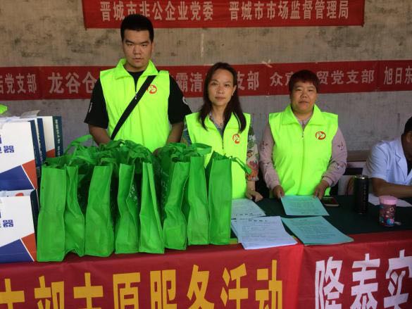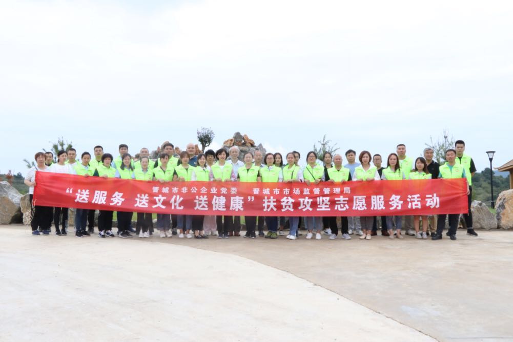 此次活動由晉城市市場監督管理局和市非公企業黨委領導帶隊,非公黨委下屬的潔霸清潔、神利電器、隆泰實業、龍谷倉等九個支部的黨員志愿者30余人參加,活動旨在關愛弱勢群體,提供志愿服務,弘揚黨員志愿者精神,切實發揮文明單位的引領示范作用,送文化和健康下鄉,助力晉城市扶貧攻堅行動。