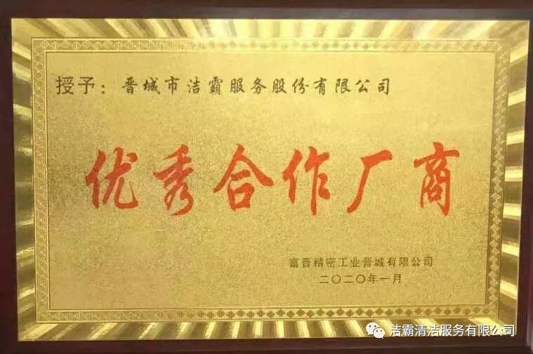 1月21日,富士康(晉城)科技工業(yè)園區(qū)召開2019年綠化環(huán)衛(wèi)服務(wù)廠商表彰大會(huì)。會(huì)上,我公司喜獲“優(yōu)秀合作廠商”稱號(hào)。