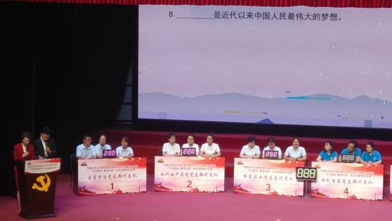 不忘初心跟黨走,牢記使命譜華章!為了慶祝中國共產黨成立99周年,6月28日下午,晉城市非公企業黨委在澤州天泰錦辰煤業有限公司職工文化宮進行了一場別開生面的“牢記使命 服務發展”黨建知識競賽。潔霸清潔黨支部、現代婦產醫院黨支部、隆泰實業黨總支、神利電器黨支部、眾宸工貿黨支部和蔬菜公司黨支部等六支代表隊在此激戰正酣,各代表隊你追我趕,斗志昂揚,不甘落后,力爭上游,最終,我公司支部代表隊榮獲比賽三等獎。