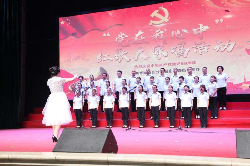 為了慶祝中國共產黨建黨99周年,6月28日,晉城市非公企業黨委在澤州天泰錦辰煤業有限公司組織開展了“黨在我心中”紅歌大家唱活動,潔霸清潔黨支部全體黨員及公司骨干參加演唱活動。