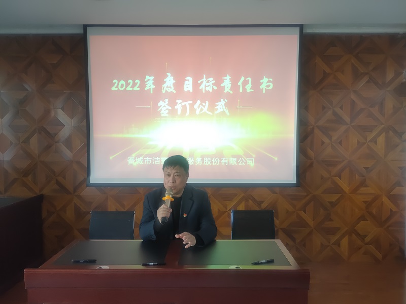 為落實公司2022年工作會議精神,進一步壓實責任,確保年度工作目標的順利完成, 3月1日下午,晉城市潔霸清潔服務股份有限公司在活動中心組織召開2022年度目標責任書簽訂會議。公司黨支部書記、總經理程晉軍,副總經理張永智、史志霞,經理助理,各子公司、分公司、部門經理及項目負責人、主管等參加會議。