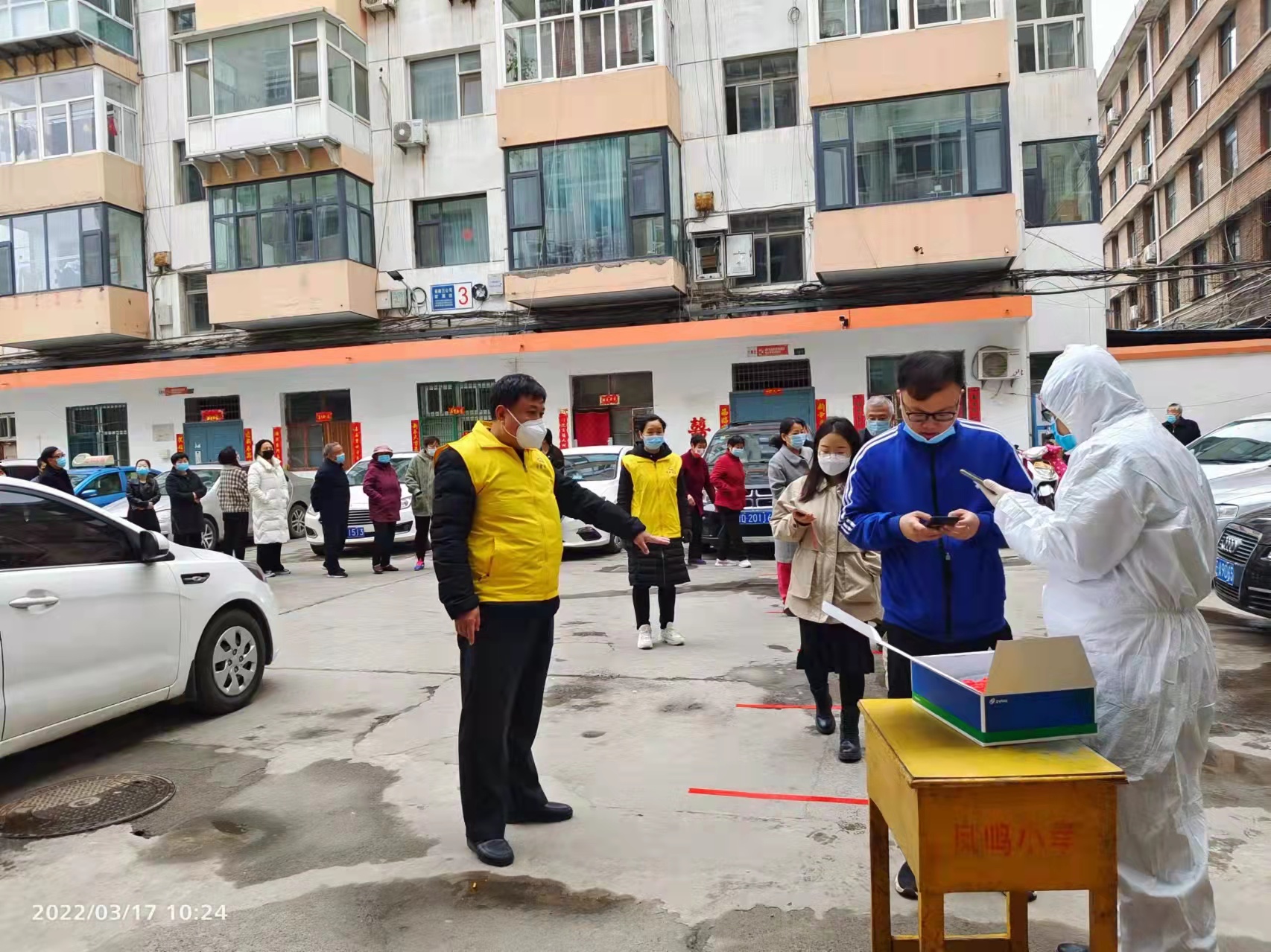 市三建小區是百潔物業去年接手的老舊小區之一。核酸檢測活動現場,他們身著志愿者馬甲,負責維護現場秩序,提醒居民排隊時嚴格遵循“一米線”,同時積極協助小區居民進行信息登記等各項工作。