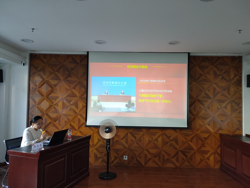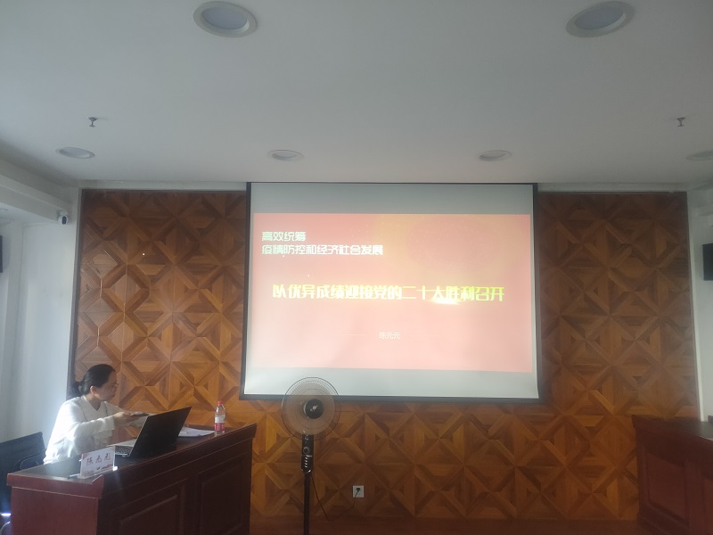 報告會上,陳元元主任從百年變局和世紀疫情相互交織,經濟全球化遭遇逆流,大國博弈日趨激烈,世界進入新的動蕩變革期講起,從落實“人民至上、生命至上”的理念,堅持“外防輸入、內防反彈”總策略和“動態清零”總方針不動搖,疫情要堅決防住;實施擴大內需戰略,促消費保障和改善民生,著力通過穩定市場主體穩增長、促就業,經濟要全力穩住;有效管控重點風險,守住不發生系統性風險的底線,發展要確保安安全等三方面做了深入的宣講。
