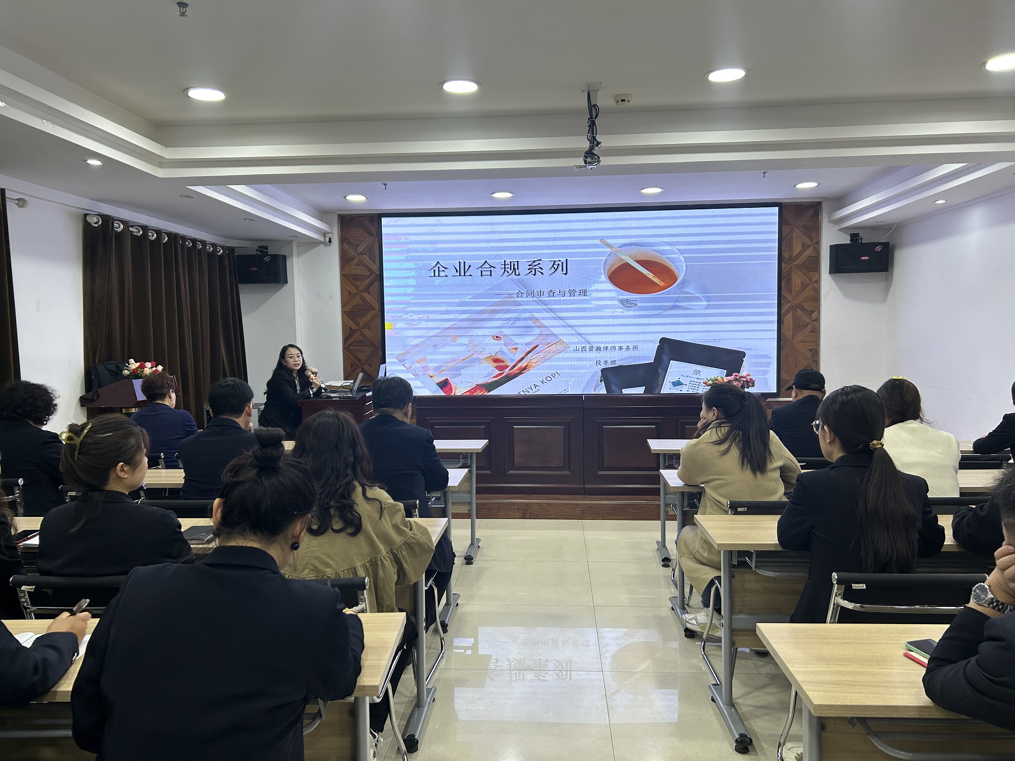 為加強(qiáng)企業(yè)合規(guī)管理,防控合規(guī)風(fēng)險(xiǎn),提升公司管理人員素質(zhì),3月14日,公司在黨群活動(dòng)中心舉辦專(zhuān)題培訓(xùn),邀請(qǐng)山西晉瀚律師事務(wù)所段李娜律師對(duì)企業(yè)合規(guī)系列重點(diǎn)對(duì)合同的審查與管理進(jìn)行了解讀。公司領(lǐng)導(dǎo)、各部門(mén)經(jīng)理及部分管理人員30余人參加培訓(xùn)。