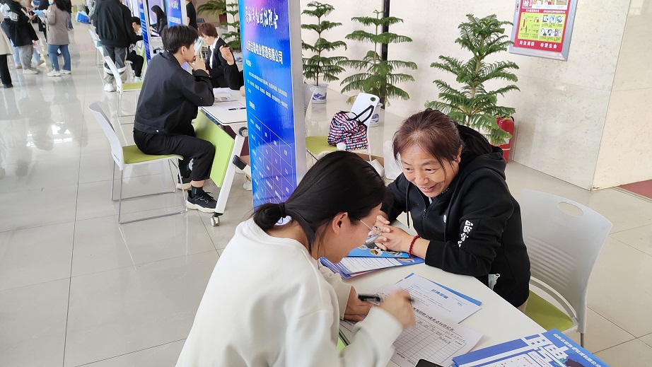 活動現場,公司人力資源部工作人員一邊分發宣傳材料,一邊向求職學生熱情地介紹高校畢業生就業創業政策,積極與高校學子溝通交流,詳細解答他們對崗位的咨詢。