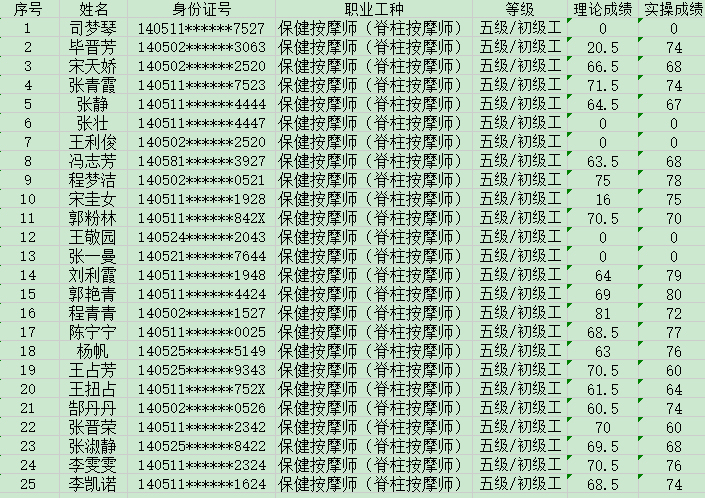 2024年5月24日第2批保健按摩師初級認定人員成績公示