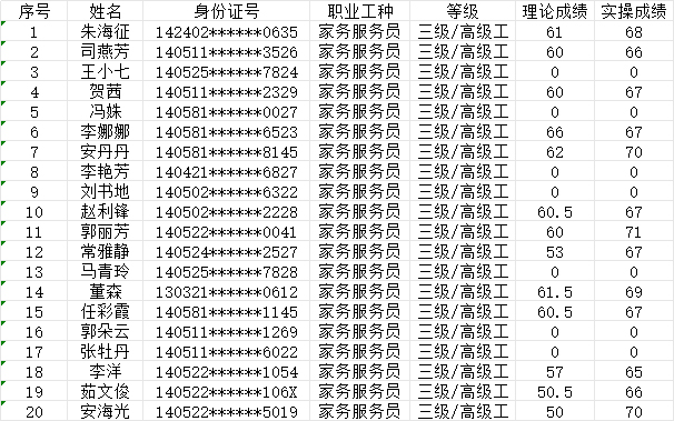 2024年7月14日第6批家政服務員高級認定人員成績公示