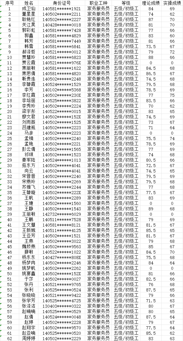 2024年7月20日第22批家政服務員初級認定人員成績公示
