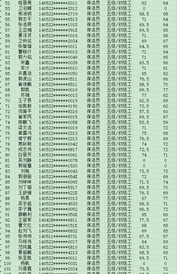 晉城市潔霸清潔服務股份有限公司職業技能等級認定中心現將2024年8月17日認定人員成績公示如下: