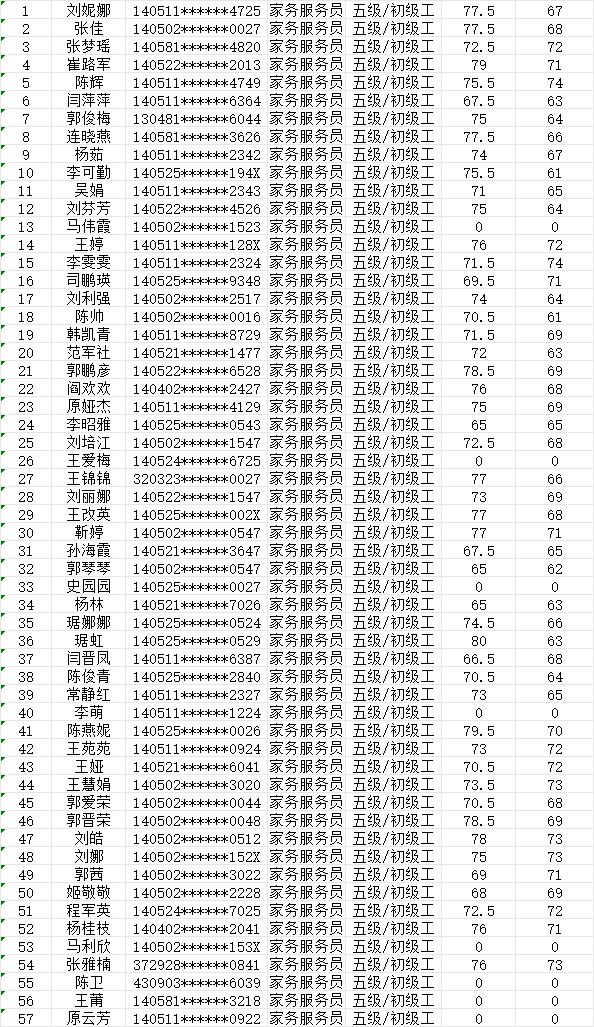 2024年9月21日第39批家政服務員初級認定人員成績公示