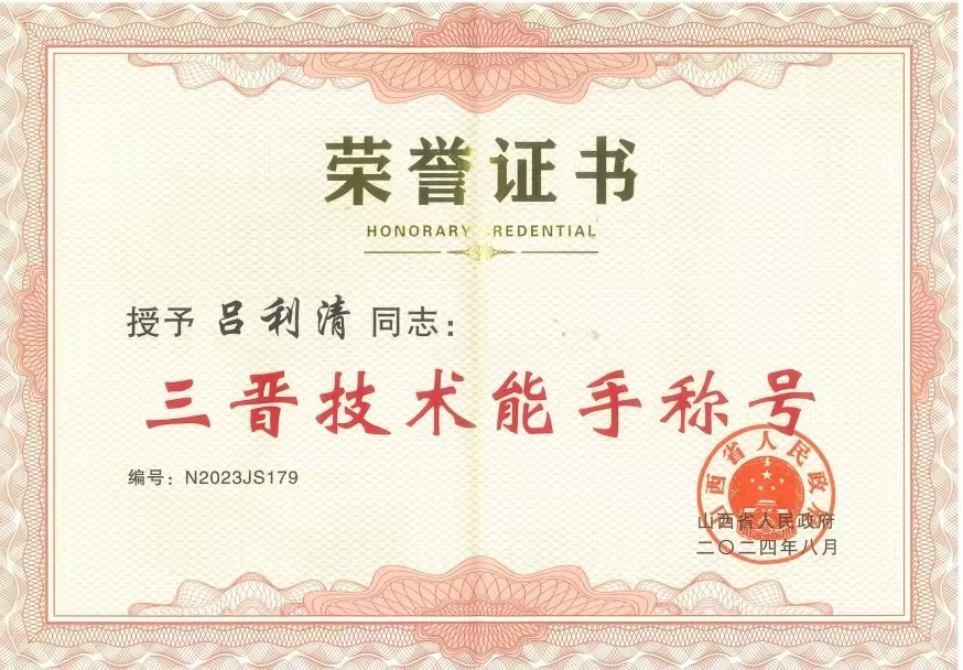 近日,山西省人民政府印發(fā)《關(guān)于授予2022—2023年度職業(yè)技能競賽優(yōu)秀選手“三晉技術(shù)能手”稱號的決定》,對2022—2023年度在省級以上職業(yè)技能競賽中取得優(yōu)異成績的517名選手予以表彰。其中,我公司呂利清榮獲“三晉技術(shù)能手”稱號。
