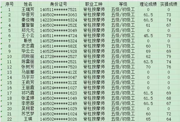 晉城市潔霸清潔服務股份有限公司職業技能等級認定中心現將2024年10月13日認定人員成績公示如下: