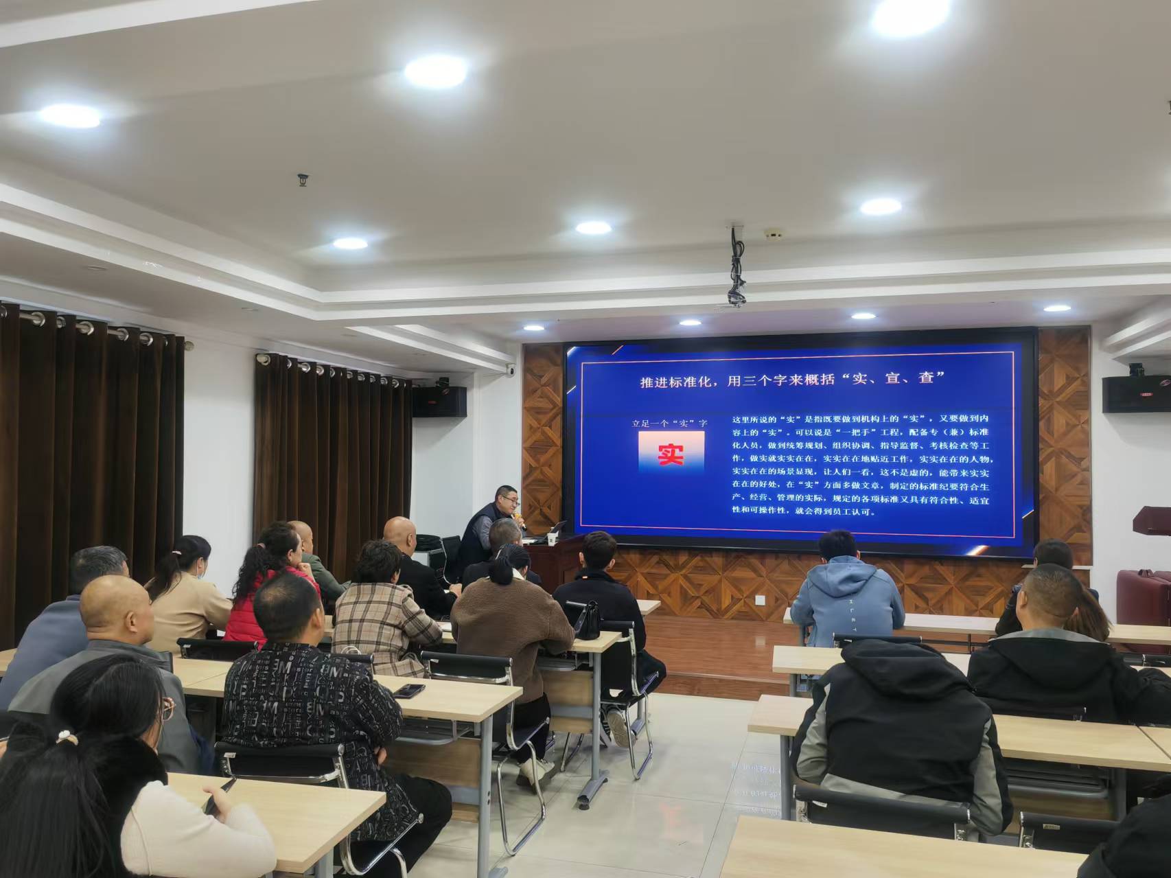 為推動潔霸餐飲公司的標準化進程,助力公司標準化建設,11月9日,公司舉辦餐飲標準化工作培訓會,邀請陳前云老師進行培訓。餐飲公司20余名員工參加培訓。