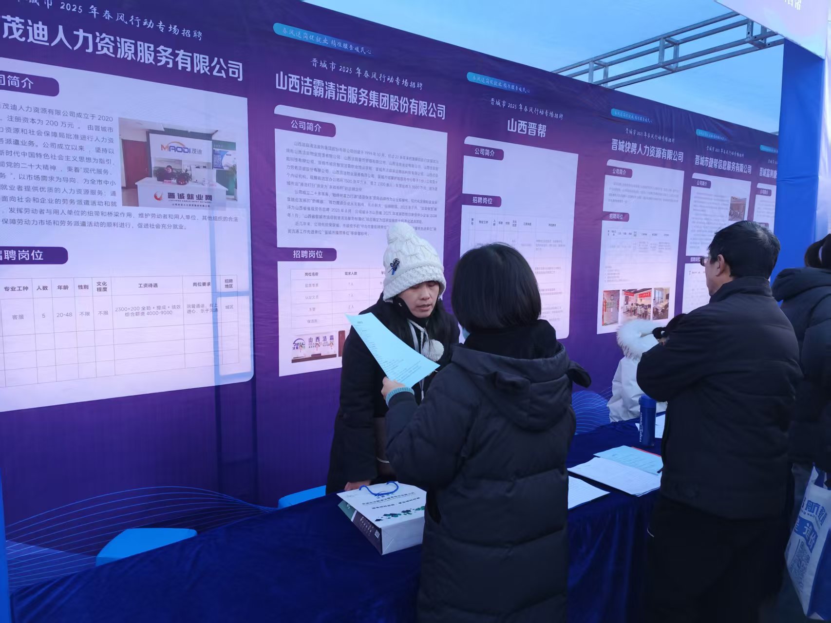 2月9日,“春風送崗促就業 精準服務暖民心”晉城市2025年春風行動專場招聘活動在陽電體育場舉行。我公司人力資源部參加活動。