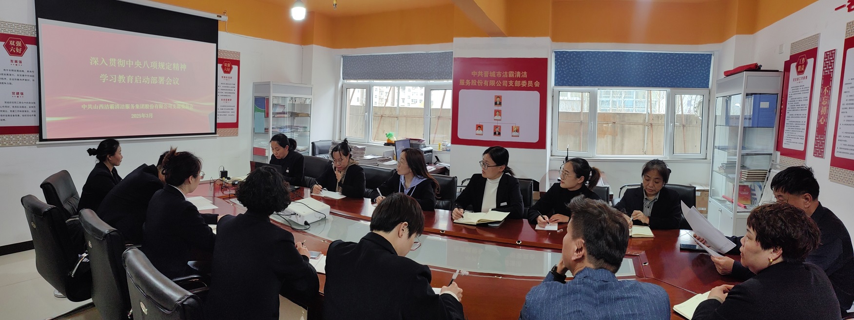 近日,山西潔霸清潔服務集團股份有限公司黨支部召開專題會議,對公司開展深入貫徹中央八項規定精神學習教育進行部署。支部書記程晉軍主持會議并講話。