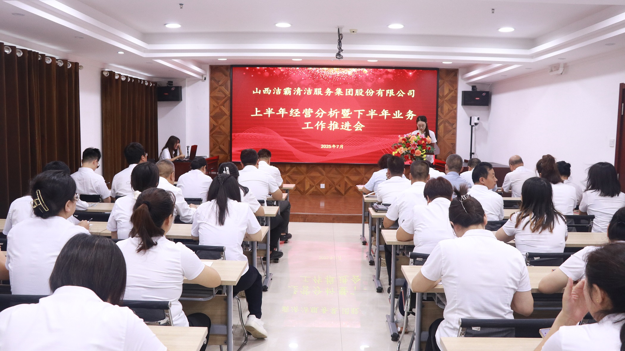 合眾力、潔霸物業、城區保安、保潔部、潔霸超市、百潔物業、培訓學校、智能科技等公司及部門分別圍繞上半年主要經營指標完成情況、新增業務項目及運營情況、存在的各種問題及改進措施、下半年工作計劃、工作創新思路等情況作了現場匯報。人力資源部、綜合辦公室和財務部也分別就上半年的工作作了匯報。
