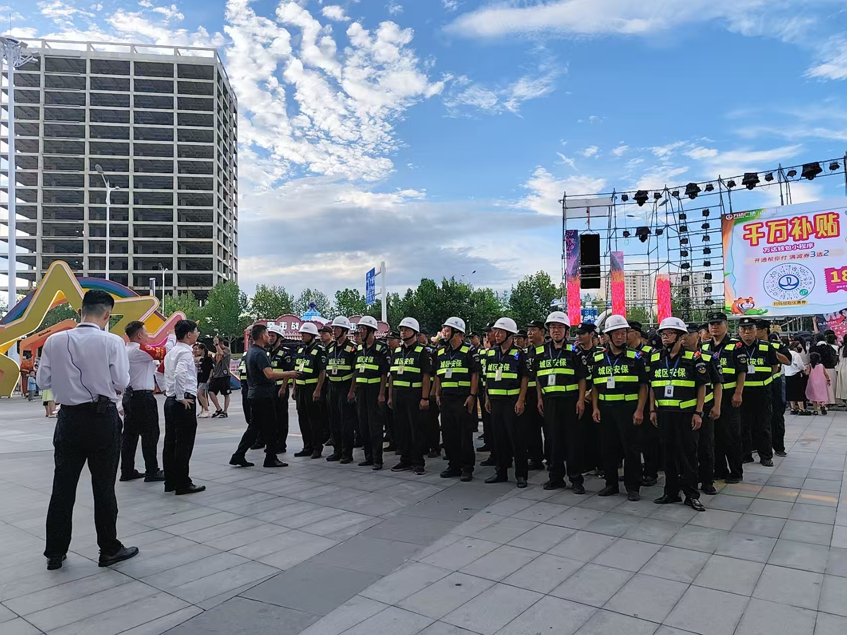 活動期間,城區保安人員按照既定方案,每天晚上6點到崗到位,配合公安、消防等部門做好秩序維護、交通疏導及服務保障等工作。出入口崗位的保安負責引導群眾有序進出,舞臺周邊的保安重點維護觀眾秩序,防止擁擠、踩踏等危險情況發生。盡管每天晚上工作時間長達6小時,他們時刻保持警惕,沒有絲毫放松,F場人流量一度突破萬人次,但執勤保安始終用規范的動作、耐心的態度引導人流,以嚴謹的工作作風和飽滿的精神狀態為活動保駕護航。