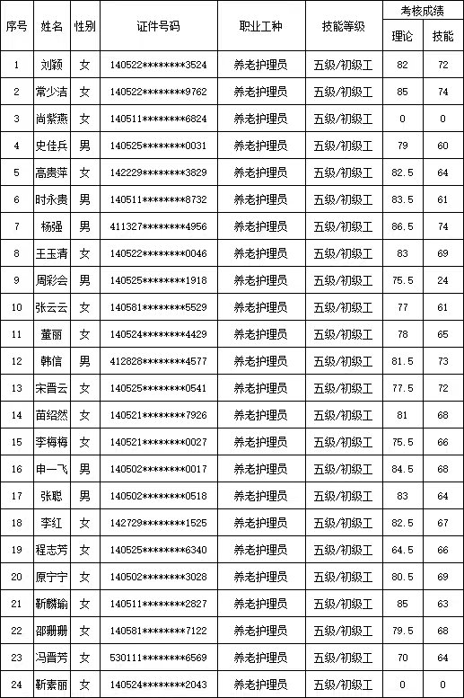山西潔霸清潔服務集團股份有限公司職業技能等級認定中心現將2025年11月2日認定人員成績公示如下:
